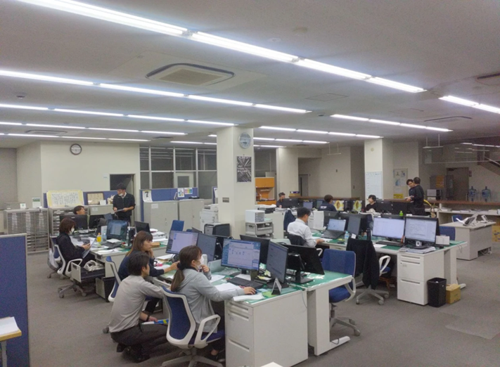 鹿児島一課(22名)・二課(11名)と課分しておりますが、お互いに相談しあって縦割りというより横割り。